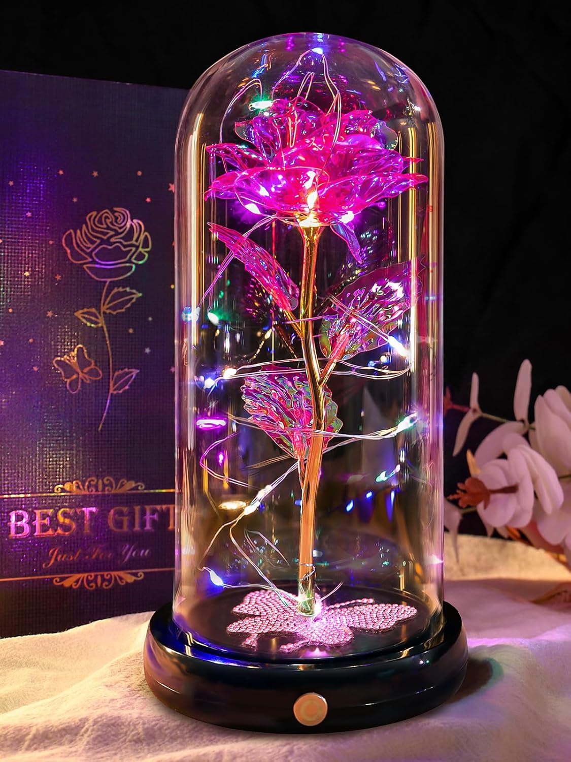 | Included Components | 1 x Rose Flower, 1 x Black Base, 1 x Led Light Strip, 1 x Glass Dome, 1 x Gift Box |